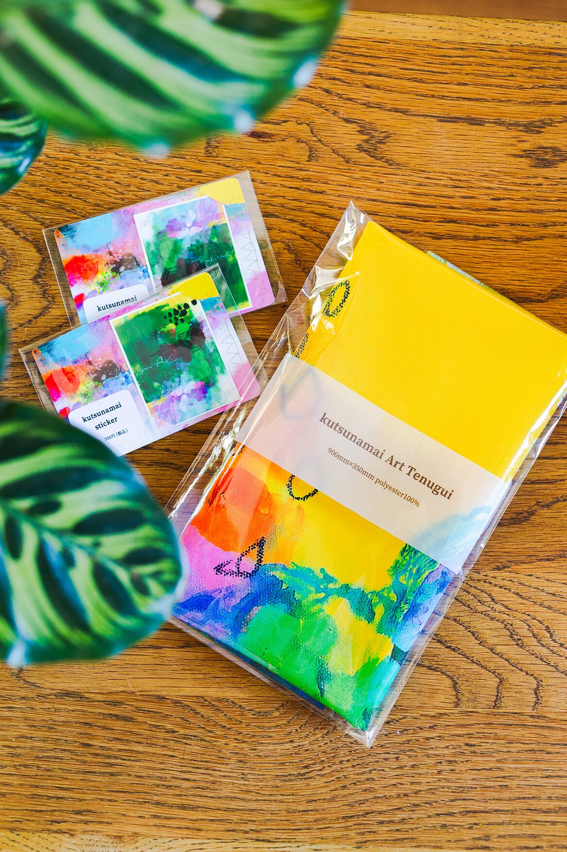 個展「湯気と雲」のメインビジュアルを台紙にし、A4シールの丸型(ランダム)で封をしています。